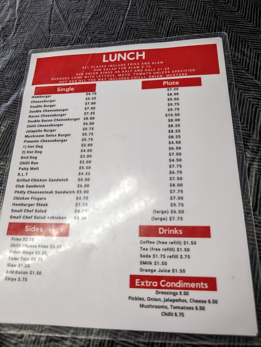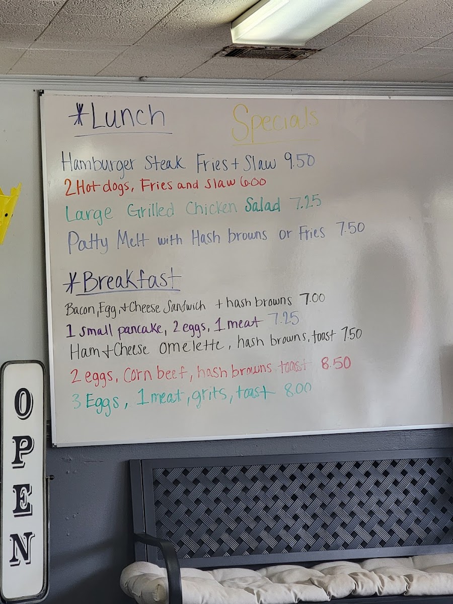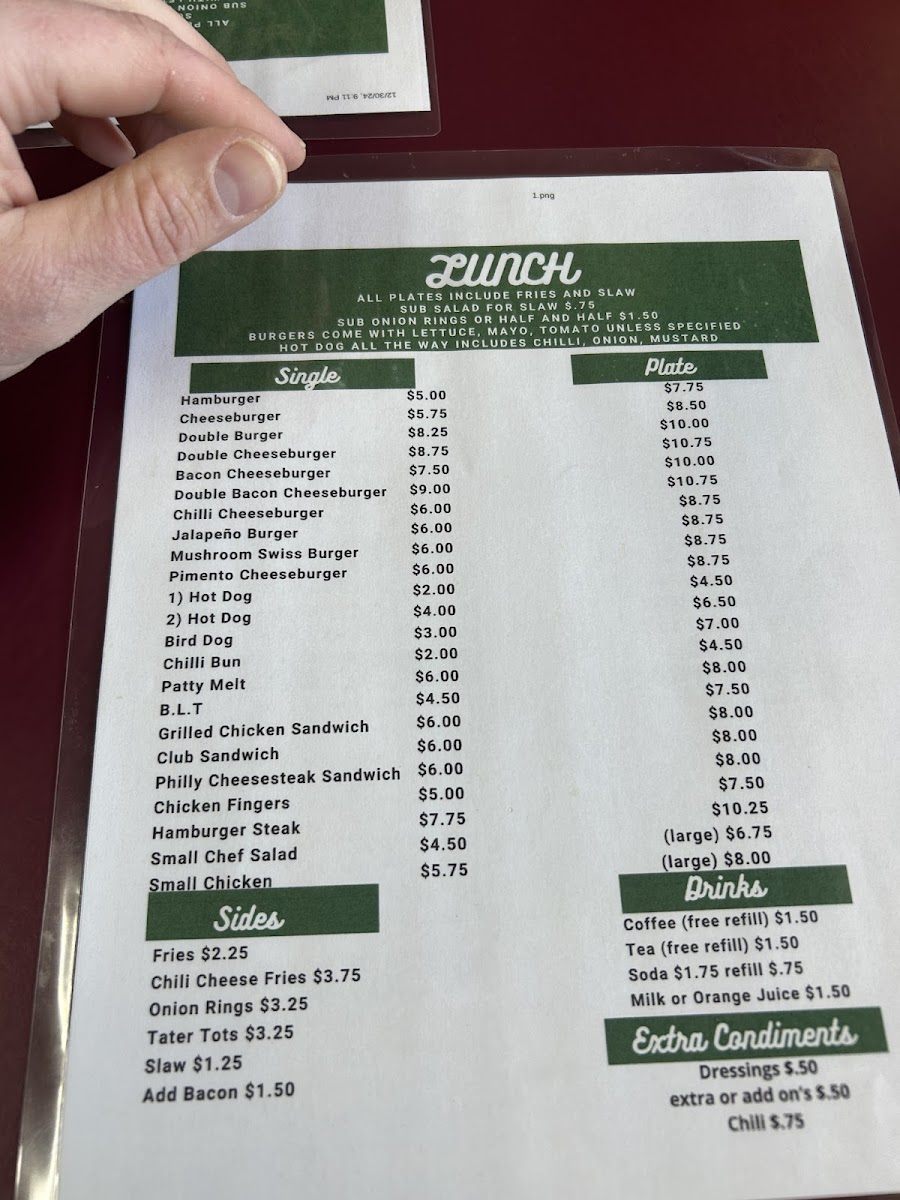 Wrapping up my look at the menu at Main Street Diner (635 W North 1st St, Seneca), it’s clear this is the kind of no-fuss spot that leans into classic comfort food and satisfying portions. If you’re craving straightforward burgers, the “Single” lineup covers all the staples-from Hamburger and Cheeseburger to heartier picks like Double Burger, Double Cheeseburger, and Bacon Cheeseburger-with plenty of options to keep it familiar but never boring. The sides keep things equally dependable: Fries, Chili Cheese Fries, Onion Rings, Tater Tots, and Slaw are exactly what you want alongside a diner-style meal, while simple drinks like Coffee, Tea, and Soda complete the easygoing vibe. Breakfast looks like a major strength here, especially with biscuits such as Egg, Gravy, Bacon, Sausage, and Country Ham, plus sandwiches like Bacon, Bologna, Sausage, Country Ham, and the classic Bacon Egg & Cheese. For bigger morning appetites, the platters-1 Egg, Grits, Toast, 1 Meat, 2 Eggs, Grits, Toast, 1 Meat, Big Corey’s Hungry Man Special, and Memphis’ Hungry Special-offer that full “plate-loaded” diner experience. Omelette fans have a lot to work with too, including 1 Meat Omelette, Grits, Toast, All Meat Omelette, Grits, Toast, Western Omelette, Grits, Toast, Philly Cheesesteak Omelette, Grits, Toast, and even a fun twist with Bacon Cheeseburger Omelette, Grits, Toast. And if you want something outside the breakfast-and-burgers lane, there are comfort-food anchors like Patty Melt With Hash Browns Or Fries, Hamburger Steak Fries + Slaw, and 2 Hot Dogs, Fries And Slaw, plus a lighter option in Large Grilled Chicken Salad-and a simple sweet note with 1 Small Pancake, 2 Eggs, 1 Meat. Overall, the menu reads like a greatest-hits collection of diner favorites: familiar, filling, and built for people who want classic flavors done without overcomplicating anything.